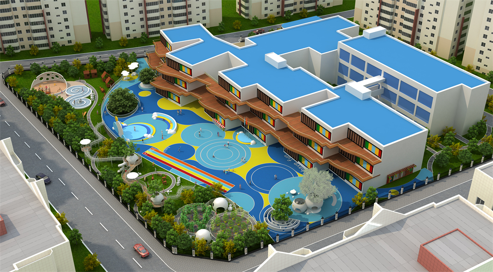 这个幼儿园主要的设计主题是“泡泡森林”,以白色、蓝色与黄色色系为主。为何泡泡是白色而不是彩色?因为每个孩子都如同白纸一般纯洁,这张纯洁的白纸是需要我们共同来渲染的,最后成就他们的彩色的人生。蓝色代表天空,就犹如泡泡们飞舞在天空一般,孩子们的梦想也一同伴随着泡泡飞翔在自由的天空。而黄色代表着光明,迎领着孩子们飞向正确方向,正如老师般的引导。