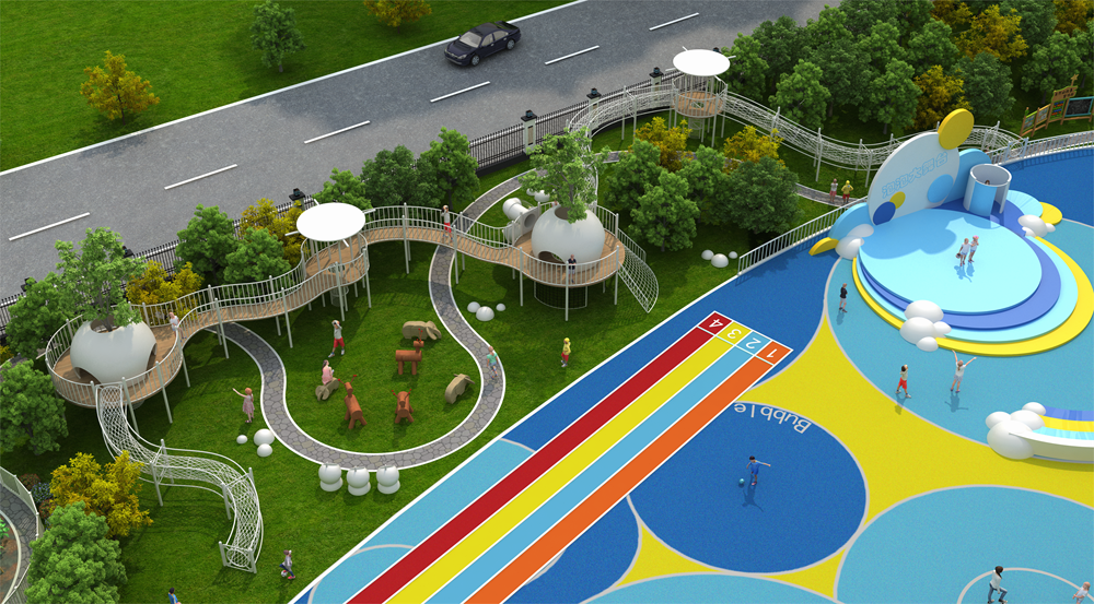 每当鲜花开满了大地,梦幻般的幻想便充满了孩子们的脑海。忽然,一阵轻盈的风吹来了一片欢快的气息。原来是孩子们畅游在这片天地之中,他们尽情的玩耍,陪伴着他们的是天空中飞舞的泡泡。泡泡这是孩子们幻想的形状和色彩,他们多彩、轻盈,但是易碎,需要我们好好的呵护,这片泡泡森林便是我们守护他们梦想与理想的伊甸园。