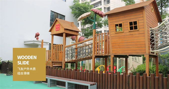 木屋平台的设计与园区场地的老树完美结合,同时也符合让孩子亲近自然的设计理念。