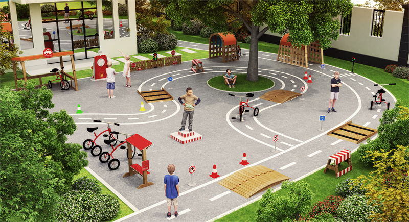 设置坡度块和减速带可以增加儿童骑行的难度,培养幼儿对身体的控制力和平衡力。
