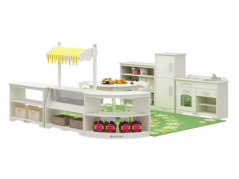 生活区通过模拟日常家具造型,打造一个具有家庭生活氛围的小空间,孩子们可以在这里玩过家家的游戏,感受家的味道,从而学会一些简单的生活常识。