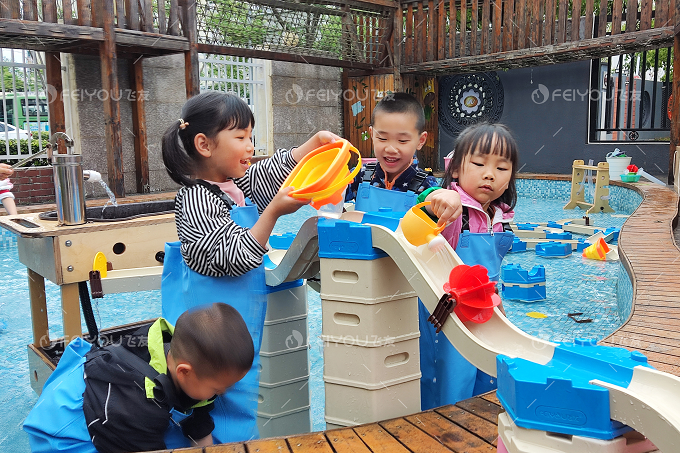 儿童天性喜欢水、喜欢沙、喜欢在大型运动器械上游戏和玩耍。幼儿园沙水区不仅能为儿童运动增添活力,拓展更多运动玩耍功能,还能赋予儿童更丰富的互动交往空间,这对儿童学习和发展起着积极的支持和促进作用。