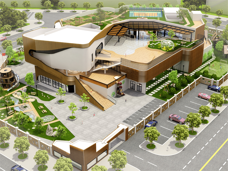 幼儿园室外设计也注重与大自然的连接。它的设计融入了自然元素,如绿色植物、花草和小溪。孩子们可以在花草丛中奔跑嬉戏,感受自然的美妙和生命的力量。设计中的小溪和人工湖泊也给孩子们提供了与水的互动机会,他们可以在水中玩耍,观察水的流动和声音,获得对水的认识和尊重。这样的设计不仅让孩子们与自然和谐相处,还培养了他们对环境?;さ囊馐?。