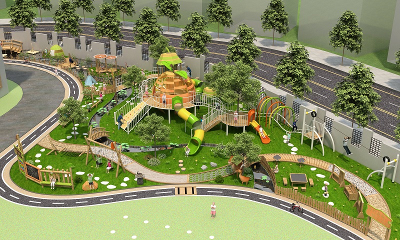 总结: 幼儿园户外场所的设计需要综合考虑安全性、教育性、趣味性和环保性。通过创造一个既安全又充满乐趣的环境,孩子们可以在户外活动中得到全面的发展。设计师应不断创新,将教育理念和环保意识融入设计之中,为孩子们打造一个理想的成长空间。