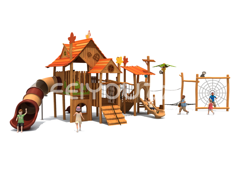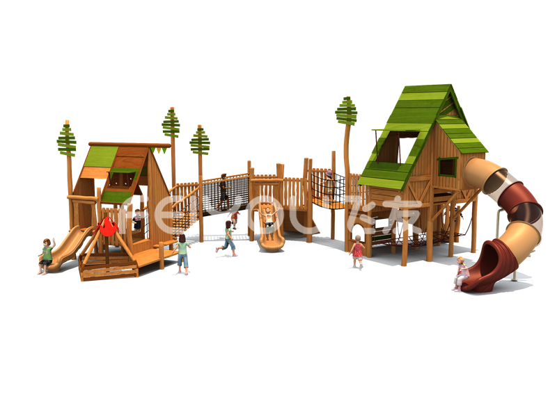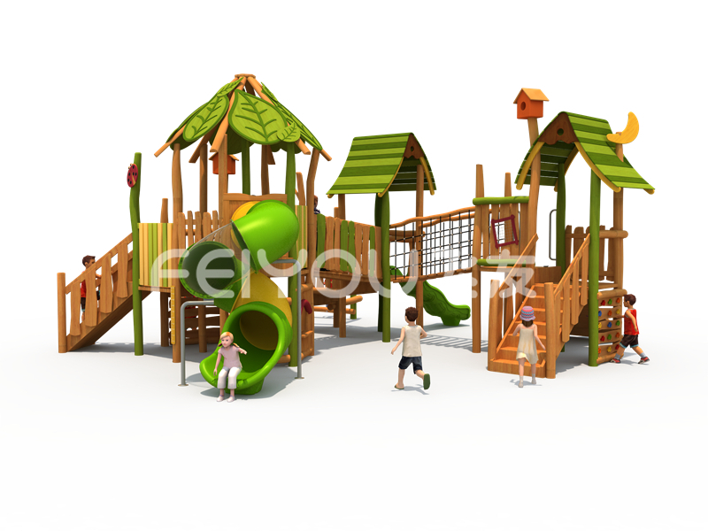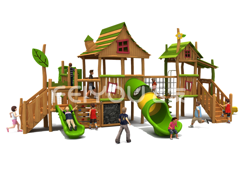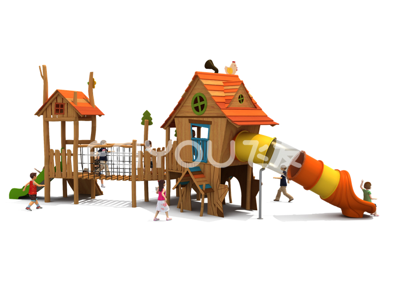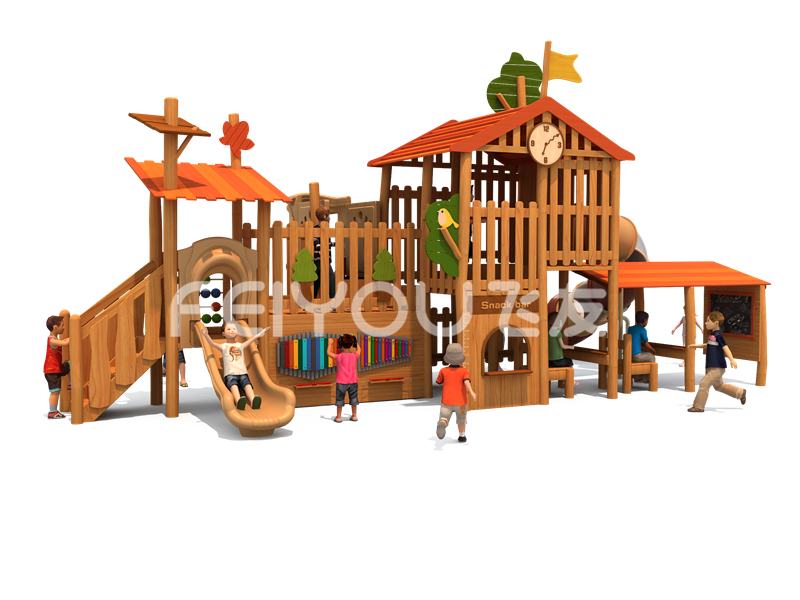 FY302-11社区少儿木质游乐玩具-幼儿园大班大型实木滑滑梯